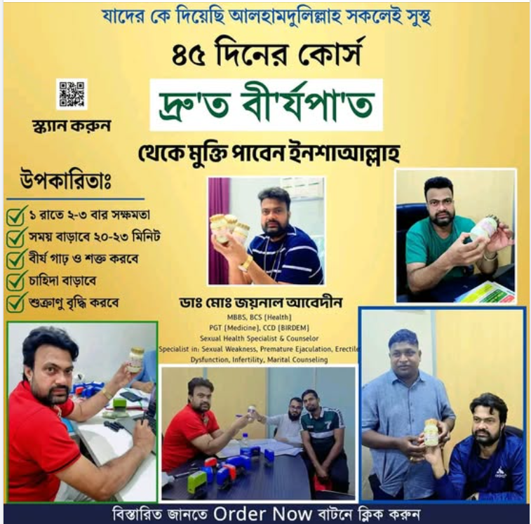 🌿 আমাদের বিশেষ আমদানি করা সাপ্লিমেন্ট – স্যাফরন ফর্মুলায় তৈরি! আমাদের আমদানি করা সাপ্লিমেন্ট বিশেষভাবে আমেরিকান ফর্মুলায় তৈরি এবং U.S.A Certified, যা WHO (বিশ্ব স্বাস্থ্য সংস্থা) দ্বারা পরিক্ষিত। এটি সম্পূর্ণ নিরাপদ, কার্যকরী এবং উন্নতমানের উপাদান দিয়ে প্রস্তুতকৃত। ✅ কেন আমাদের সাপ্লিমেন্ট সেরা? 🔹 আমেরিকান গবেষণা ভিত্তিক ফর্মুলা – আধুনিক বিজ্ঞান দ্বারা উন্নত ও পরীক্ষিত। 🔹 U.S.A Certified – আন্তর্জাতিক মান বজায় রেখে প্রস্তুত। 🔹 WHO Verified – বিশ্ব স্বাস্থ্য সংস্থার পরীক্ষায় উত্তীর্ণ। 🔹 পার্শ্বপ্রতিক্রিয়া মুক্ত ও নিরাপদ – সম্পূর্ণ প্রাকৃতিক উপাদান সমৃদ্ধ। 🔹 সত্যিকারের কার্যকারিতা – হাজারো সন্তুষ্ট ব্যবহারকারীর অভিজ্ঞতা।.