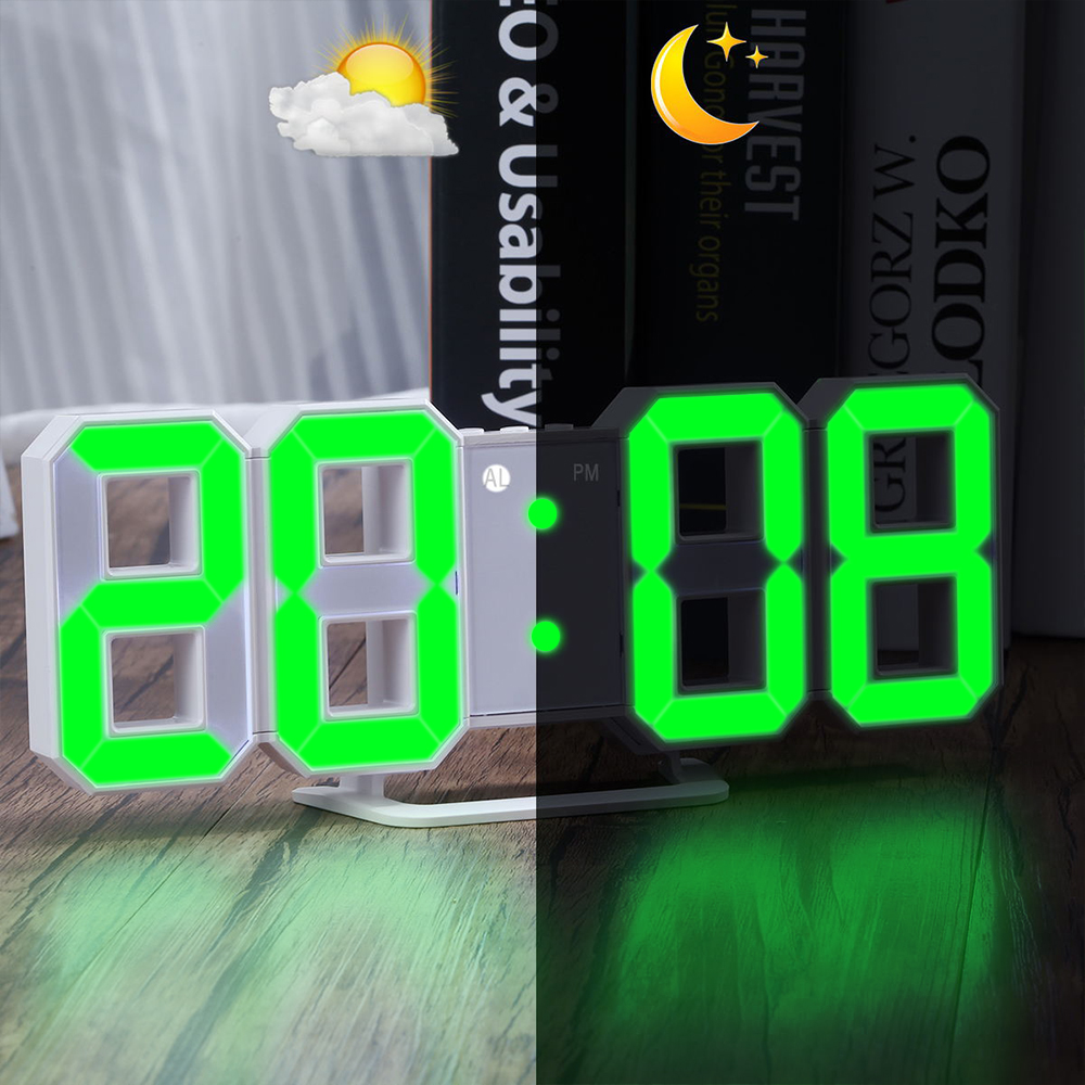 3D Digital Wall Clock LED Table Clock Time Alarm Temperature Date Display